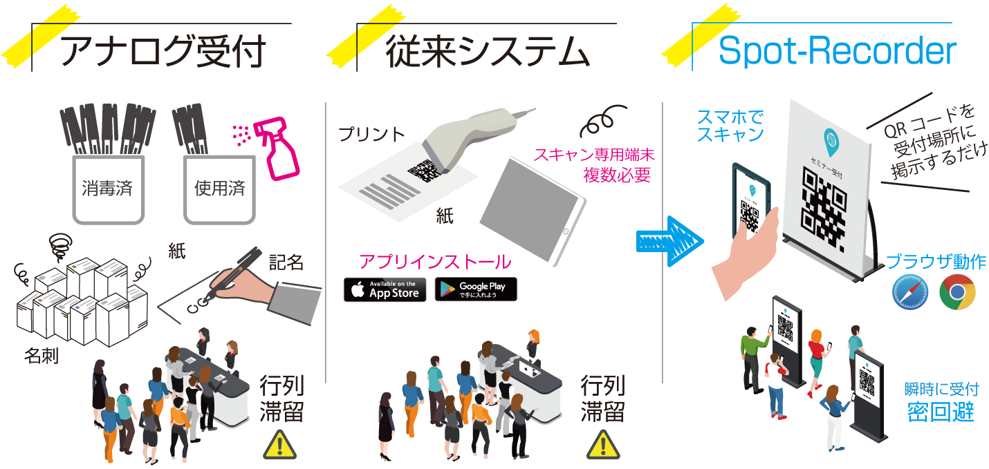Withコロナ。再開されるイベント、展示会、セミナー 等の来場者受付に最適な非接触受付システム「Spot-Recorder」をリリース