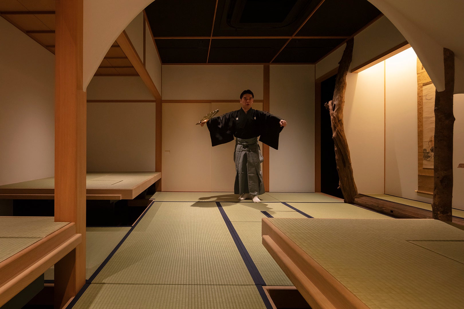 (3) | 概要 | 能の詩、仕舞を交えた茶事 炭点前、懐石、茶席、宴会 亭主 茶道宗和流十八代家元 宇田川 宗光 能 観世流シテ方能楽師 武田友志氏 小鼓 幸清流小鼓方 森澤勇司氏 |
