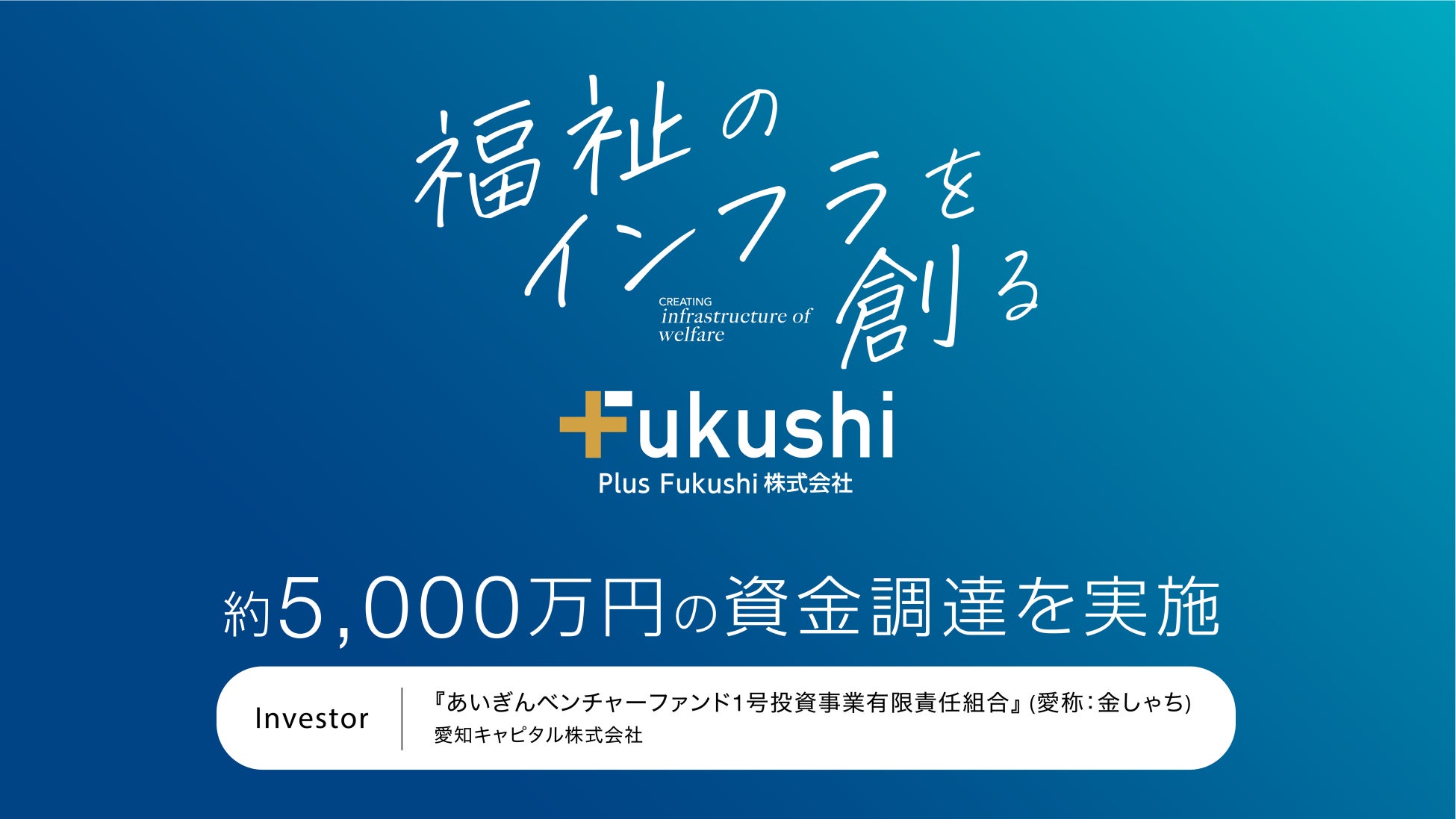 Plus Fukushiが、あいぎんベンチャーファンド(愛知キャピタル)から約5,000万円の資金調達を実施