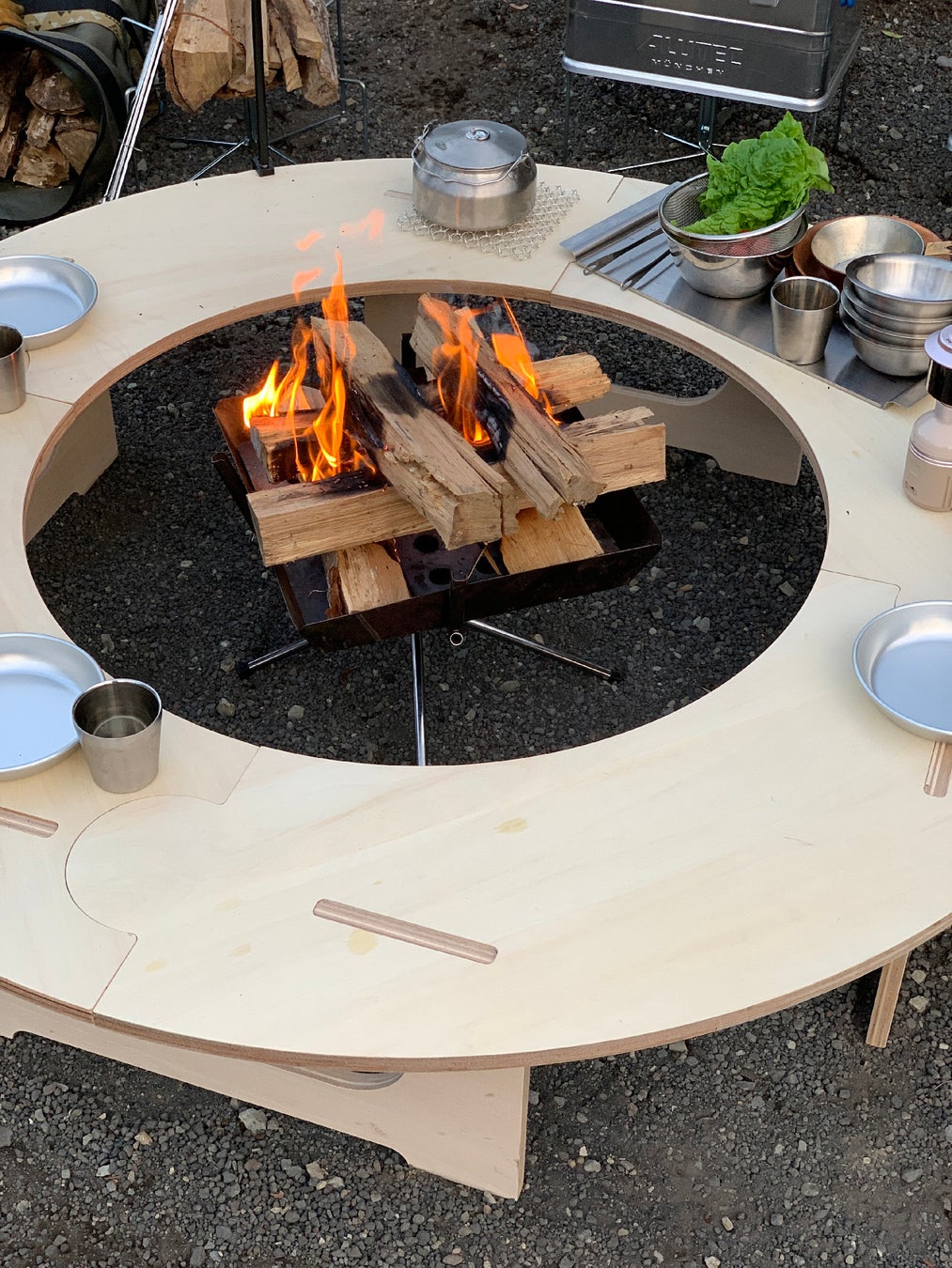 アウトドアではキャンプテーブル、室内では子供たちが遊ぶテーブルとしてなど、 場所や用途を選ばず自由な使い方ができるのがこの家具の魅力です。 組み立てが簡単で持ち運びやすいのも特徴です。