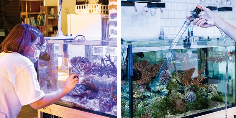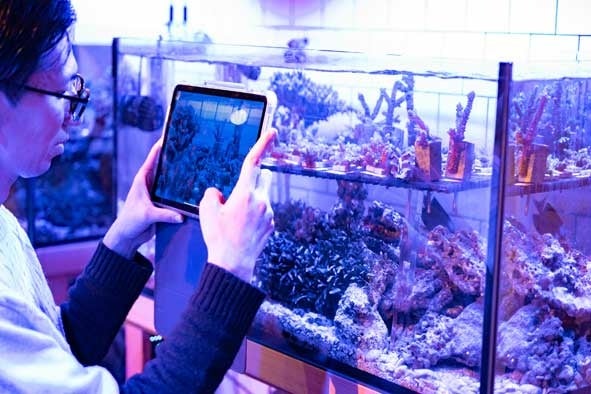 里海珊瑚プロジェクトは、海水温上昇の影響等で深刻なサンゴの白化現象が進むなかで、海洋環境保全を推進する企業や自治体、漁協等が協働し、海洋生態系の重要な役割を担うサンゴを陸上で育成し海に戻す「里海づくり」を目指す事業です。本事業の核となるサンゴの陸上養殖では、飼育技術を習得した障がいのある方が、IOTを活用して水槽の環境管理を行い、安定的なサンゴの生育を支えています。障がいのある方が、生活水準の向上に有効なスキルを身に付けて経済活動に参画し、社会的・経済的に自立できる環境、自身の能力や個性を持続的に存分に発揮できる環境の創出を同時に目指しています。