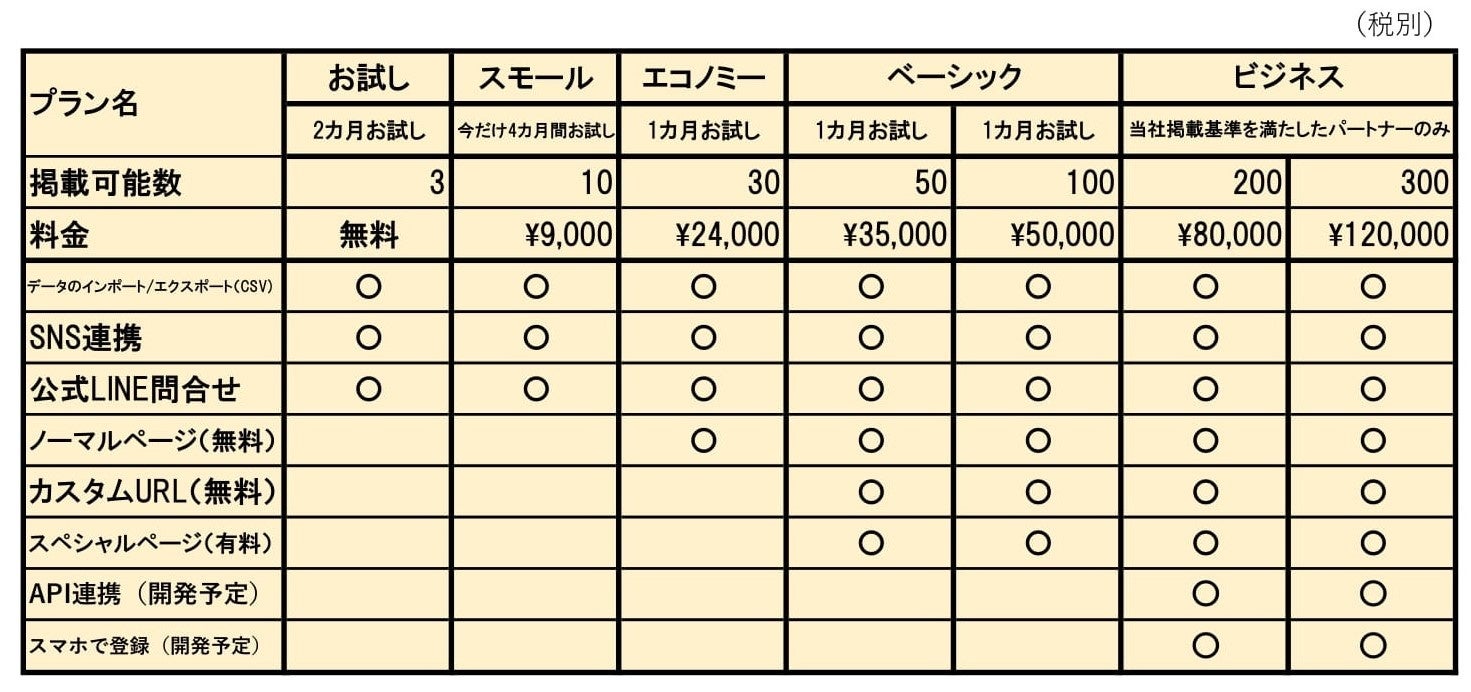 プランにより掲載可能数やご利用いただける機能が異なります。