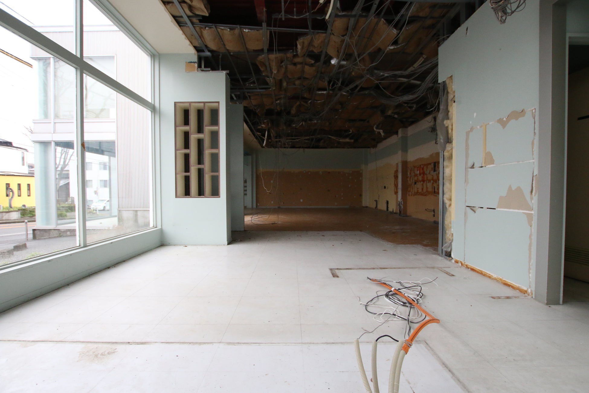 メインロードから一本入った通りに建つ元美容室の店舗でしたが、天井が剥がれた状態での募集であったため、改装コストの問題でしばらく決まっていない物件でした。