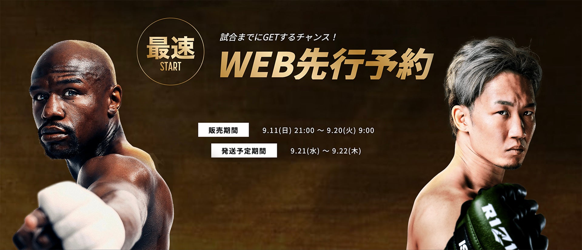 販売期間は9月11日(日)21時〜9月20日(火)9:00まで。大会までにゲットして、試合当日会場やご自宅で世紀の激突の一員として歴史を変える瞬間を見届けよう!!