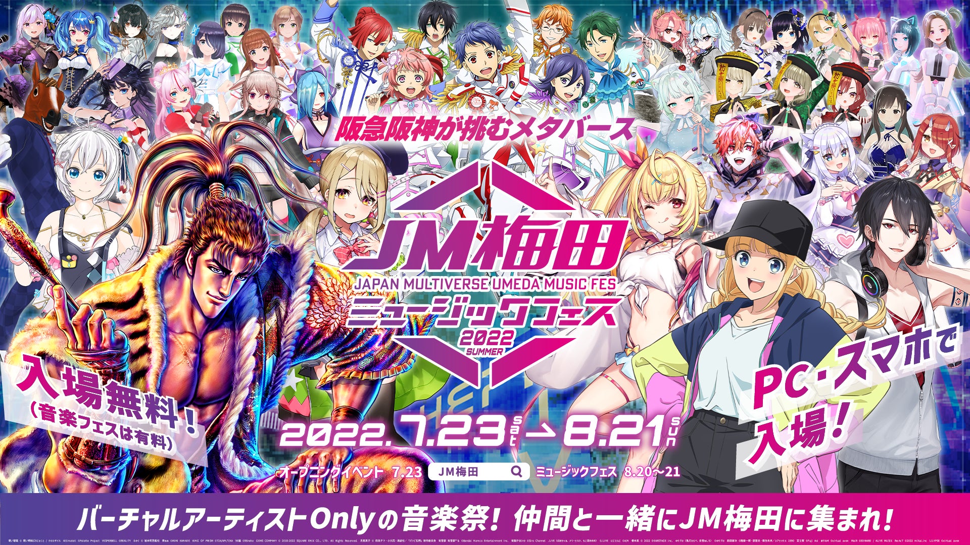 バーチャル・エイベックス株式会社(代表取締役社長:加藤信介、本社:東京都港区、以下:バーチャル・エイベック ス)は、阪急阪神ホールディングス株式会社(本社:大阪市北区、代表取締役社長:杉山 健博)が2022 年7 月23 日(土)~8 月21 日(日)に主催する、バーチャルイベント「JM 梅田ミュージックフェス2022 SUMMER」のライヴ制作を担当します。