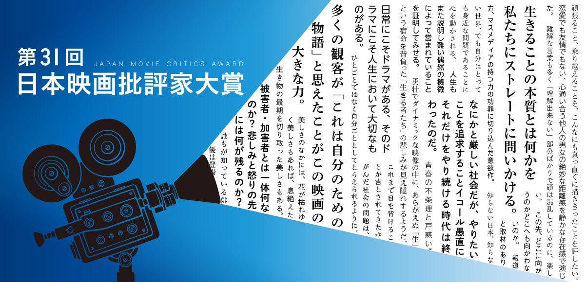 「第31回日本映画批評家大賞」授賞式開催と選考理由解禁のお知らせ