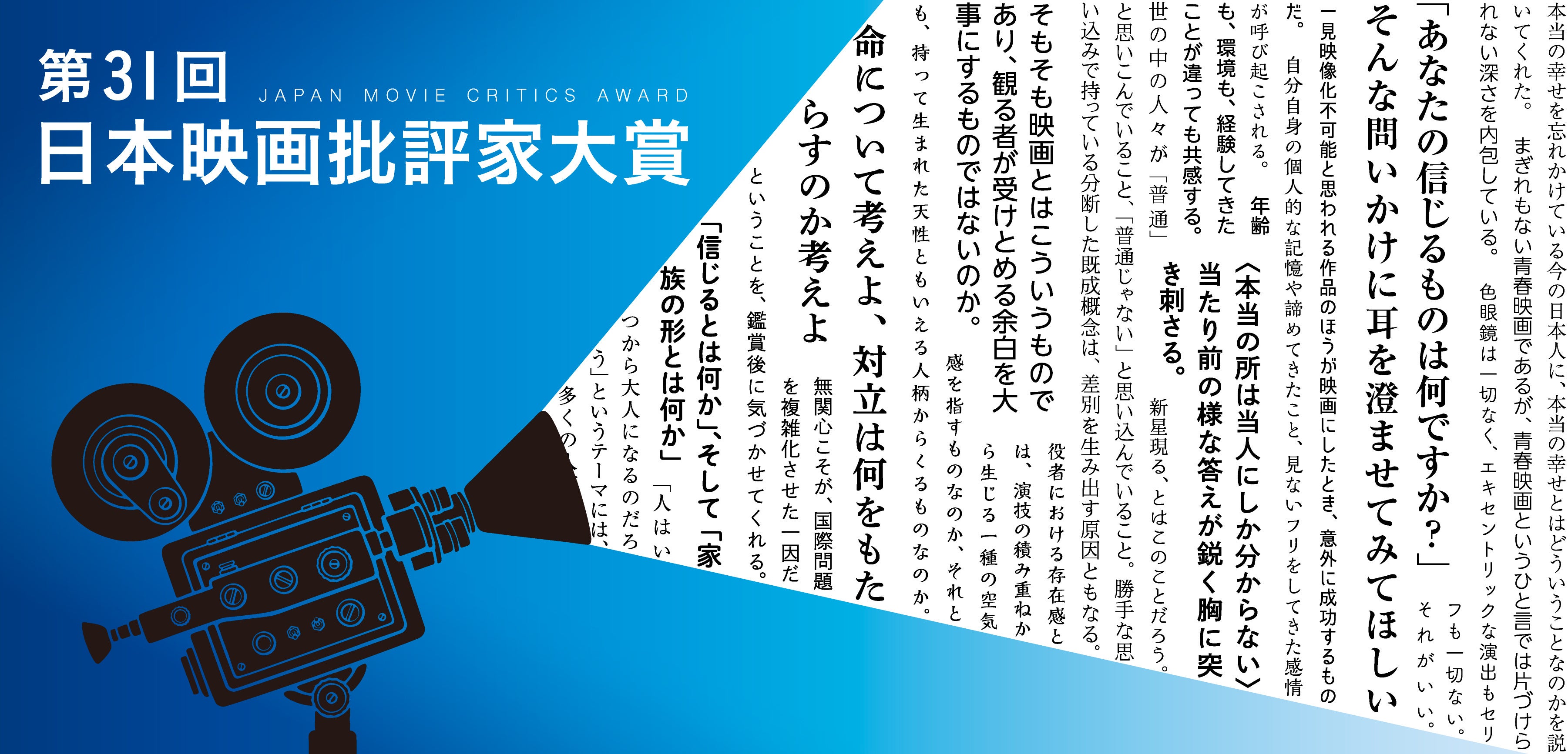批評家の発する『ことばの力』をテーマに、第31回日本映画批評家大賞の授賞式典を今年も開催いたします。