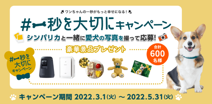シンパリカを処方された飼主さま限定キャンペーンです。シンパリカと一緒に愛犬の写真を応募した方の中で、合計600名様に豪華景品をプレゼントする、「#一秒を大切にキャンペーン」も実施しています。