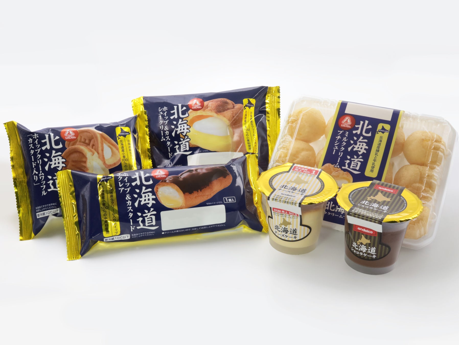 アンデイコの人気シリーズ【北海道シリーズ】は、北海道産素材を使ったこだわりの商品です。シュークリームやエクレア、ワッフル、2層カップデザートなど幅広いラインナップで定番展開しています。