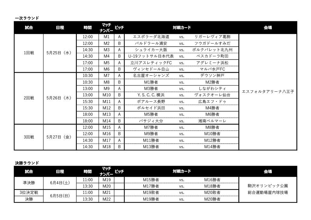 今大会は、Fリーグに所属するディビジョン1:12チーム、ディビジョン2:9チームにU-19フットサル日本代表を加えた、計22チームが熱い戦いを繰り広げます。3シーズンぶりの開催となる今大会は有観客で実施いたしますので、ぜひご期待のうえ、ご来場ください!