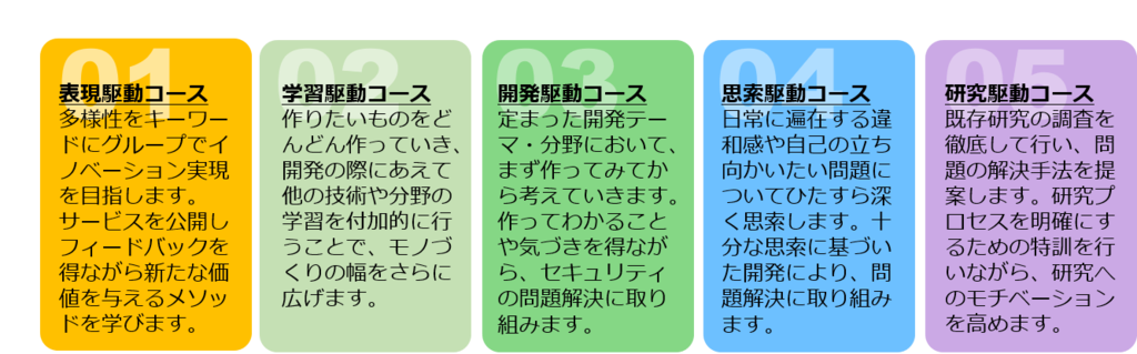 受講生(トレーニー)は、大学や企業など様々な分野で活躍する研究開発・セキュリティのスペシャリストから成るトレーナー陣から、技術的観点だけでなく継続力や発想力といった観点での指導を受け、作品作りに取り組みます。