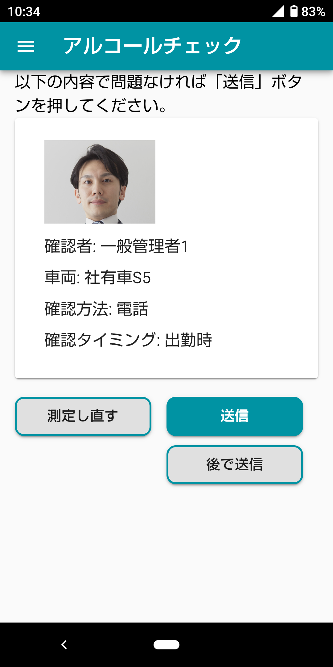 1.アルコール検知器を使わない場合も、運転者の顔写真を確認者に撮影・送信できます。