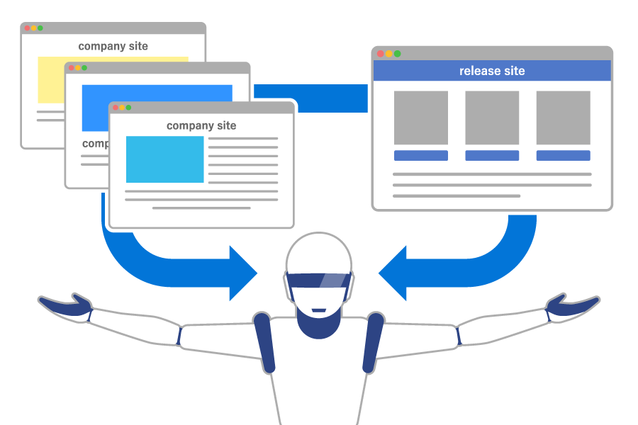 そこで、約70万社の企業サイトのデータベースと最新のAIテクノロジーを活用することで、企業サイトのリリース情報をタイムリーに収集しお知らせする、「リリースタイムズ」を開発いたしました。「リリースタイムズ」を使用することで、効率よく企業ニュースをキャッチアップしビジネスに繋げることができます。