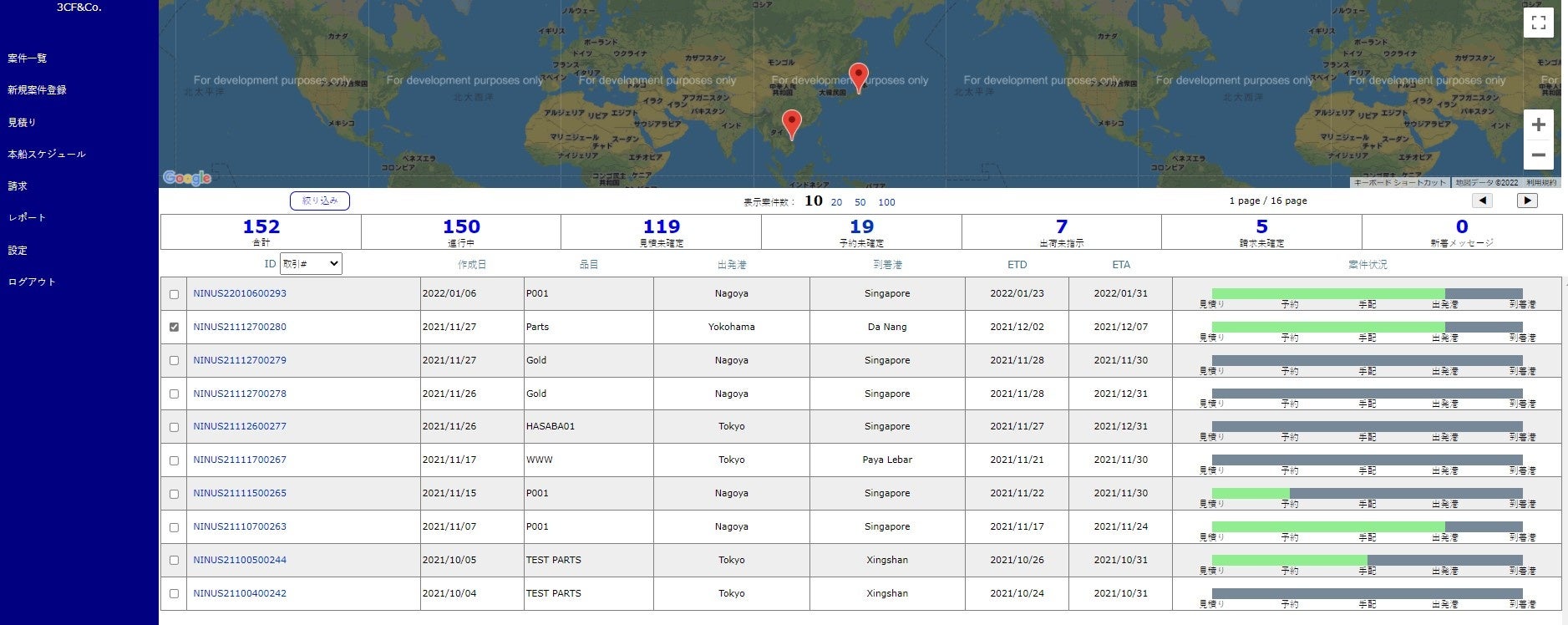 当社は荷主企業と複数の大手フォワーダーとの輸送手配業務を標準化することで、物流業界全体の業務効率の向上を目指しています。なお、主な機能は以下となります。
