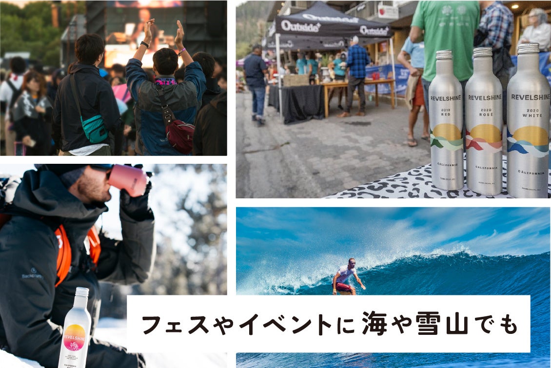 キャンプは荷物が多く、ワインボトルやグラスを持参する余裕がありません。そんな中で出会ったのが「レヴェルシャイン」。このワインは、アウトドア専用としてカリフォルニアで作られており、日本初上陸です!キャンプ・フェス・海・山などのあらゆるアウトドアシーンで楽しめるために開発されたワインです。
