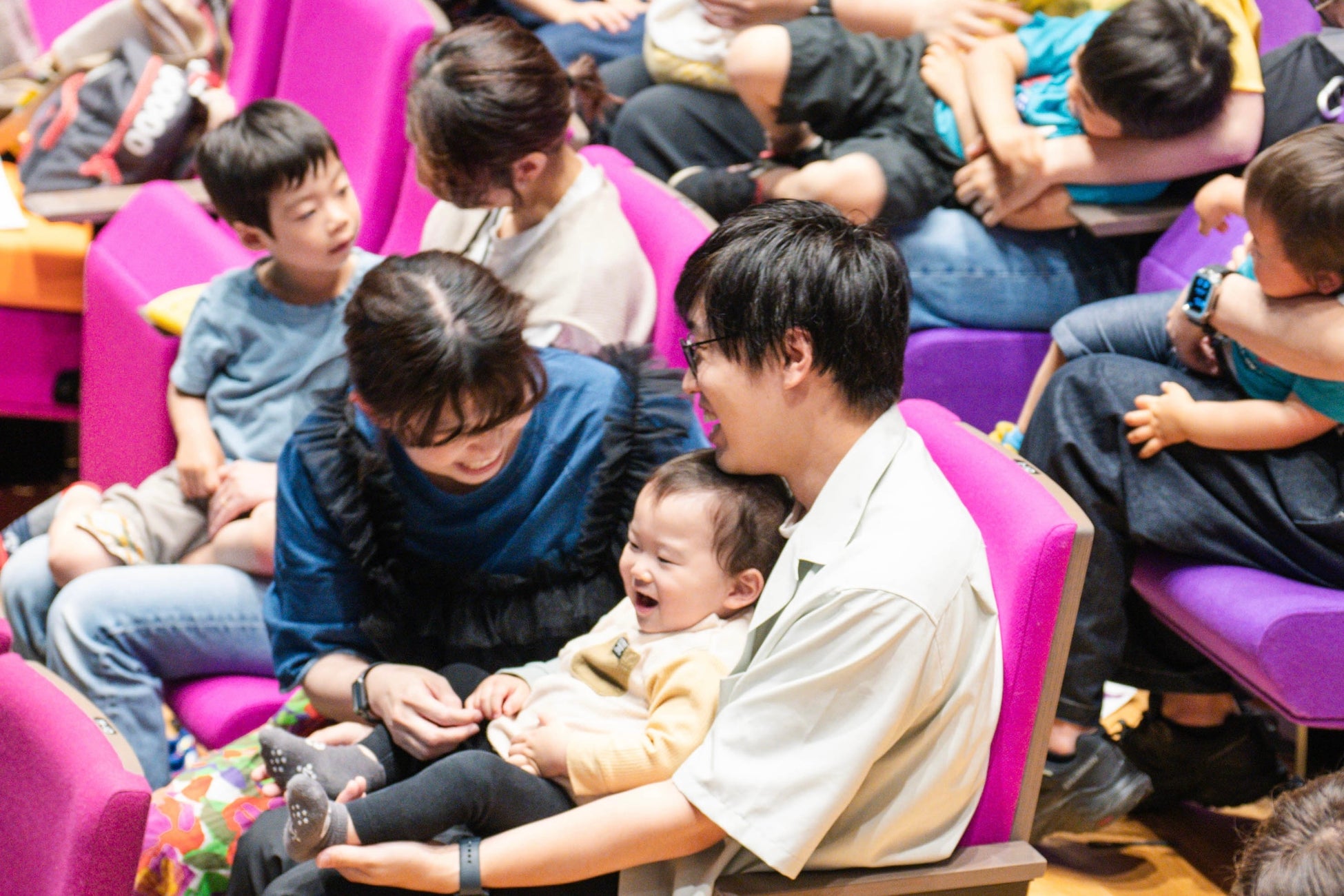 暗い会場が苦手なお子様でも楽しむことができるよう、照明演出の活用によって、子どもたちの視線を舞台と、家族に釘付けにします。
