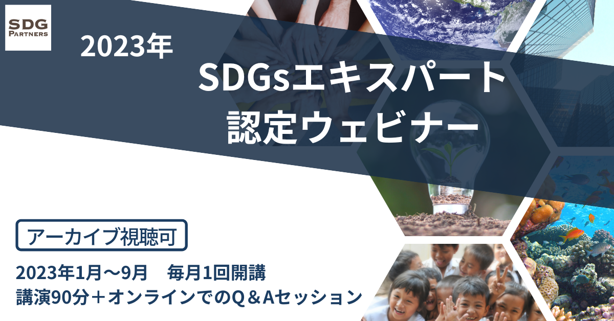 組織のサステナビリティ推進全体の支援や人権、TCFDといった専門分野の推進支援も行うコンサルティング会社、SDG パートナーズ有限会社(本社:東京都千代田区、代表取締役CEO 田瀬和夫)は、大好評ウェビナー、「SDGsエキスパート認定ウェビナー」を今年度も2023年1月18日(水)より開講いたします。