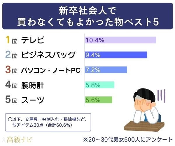 - 新卒社会人が「あのとき買わなくてもよかった」と後悔した物は?