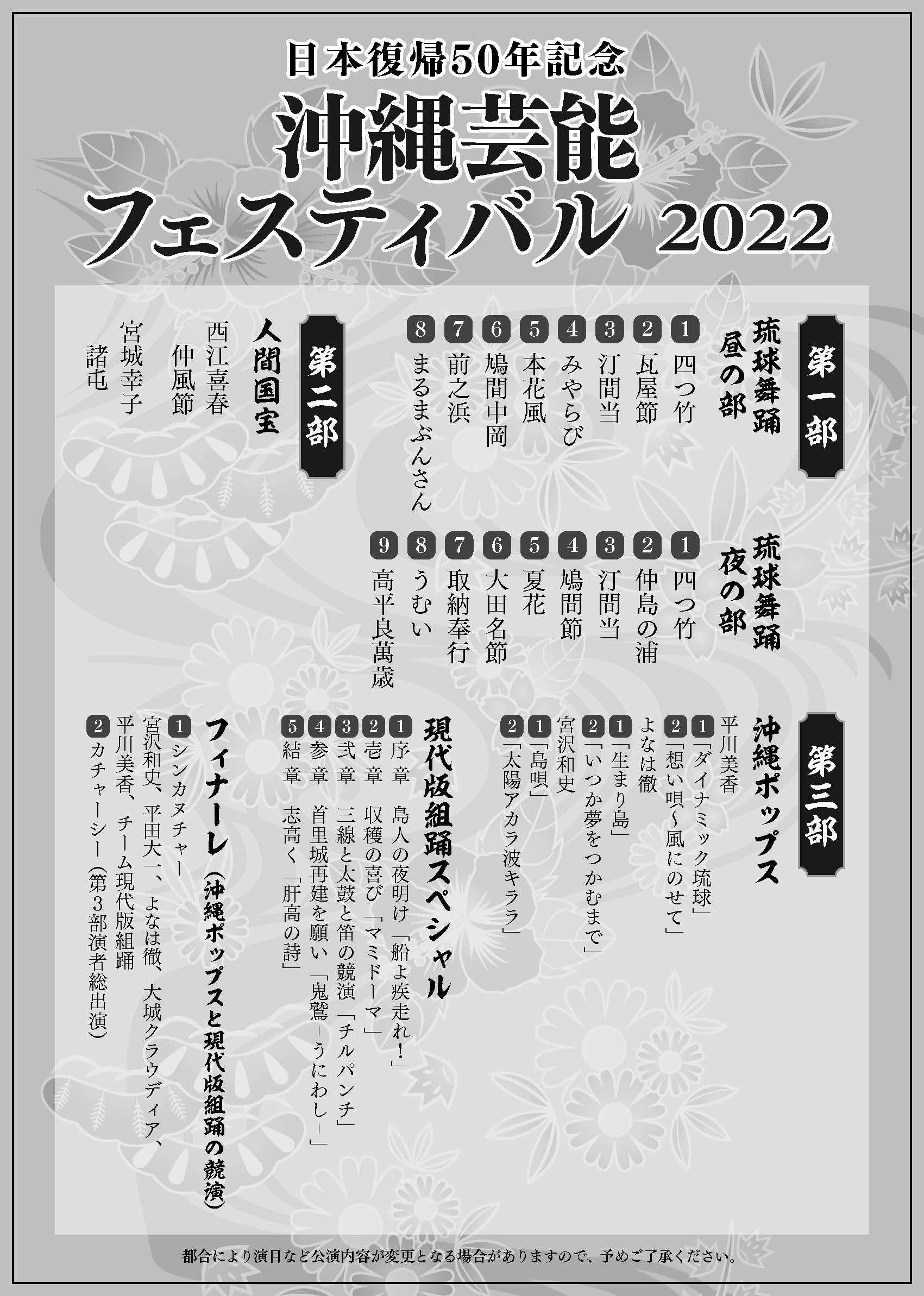 ■「日本復帰50年記念 沖縄芸能フェスティバル2022」開催内容(3部構成)