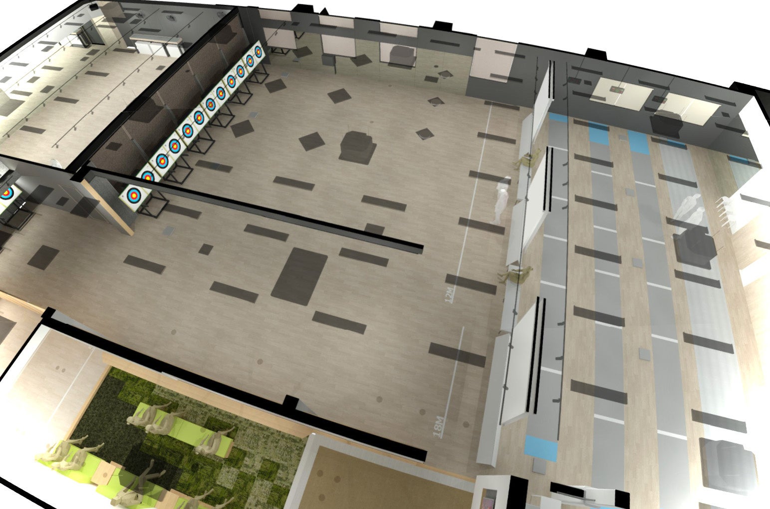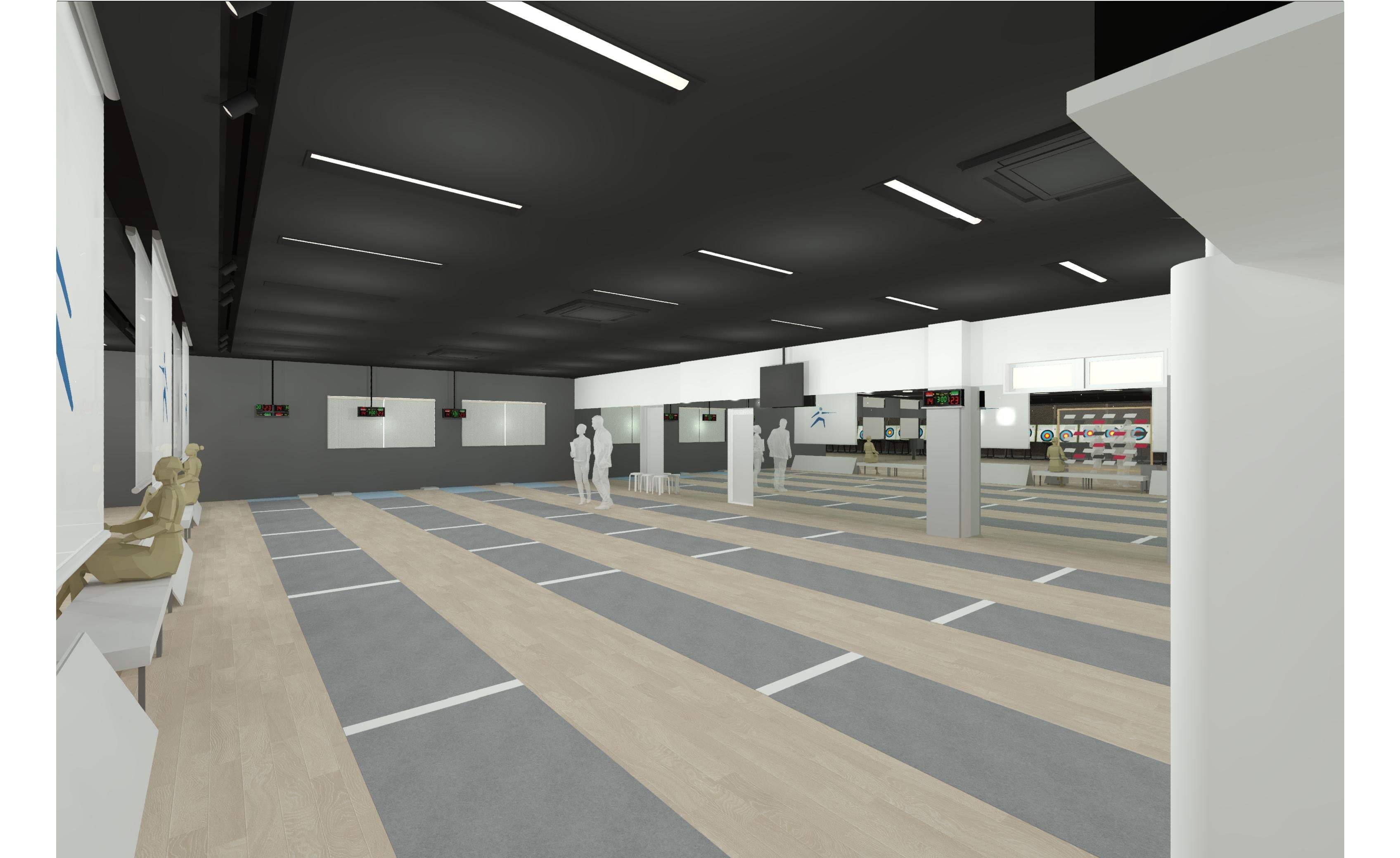 今回は残された遊休スペース(旧男女更衣室)をさらに改装し、アーチェリーゾーンを拡張するとともに、フェンシングゾーンを整備することで、日本で初となるアーチェリーとフェンシングの両方が楽しめる本格的な常設施設として生まれ変わります。
