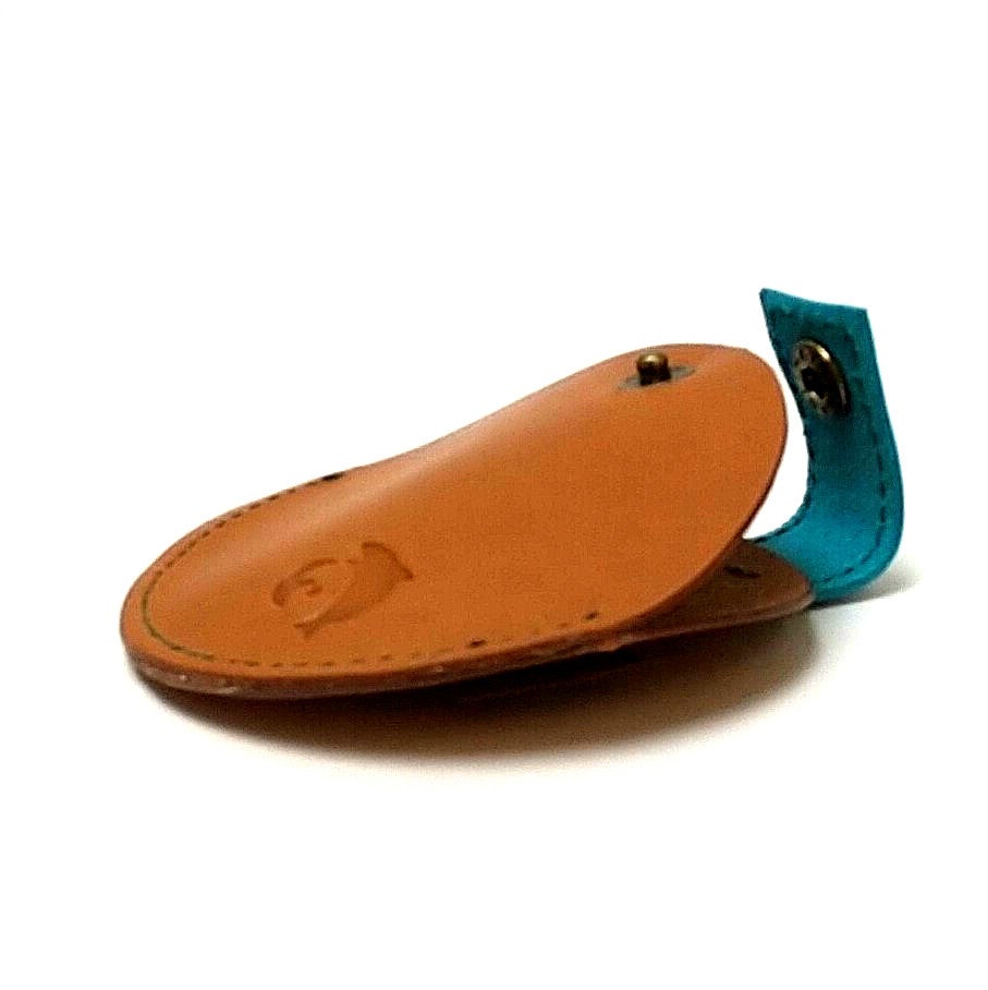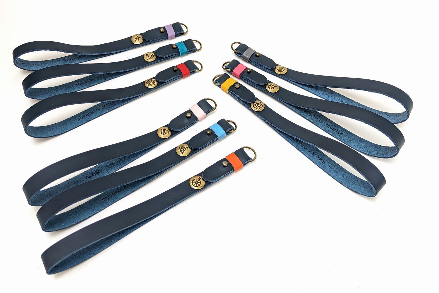 ストラップを束ねているレザーにAqoursメンバーのイメージカラーのレザーを使用。また、飾りボタンにメンバーアイコンの刻印入り。