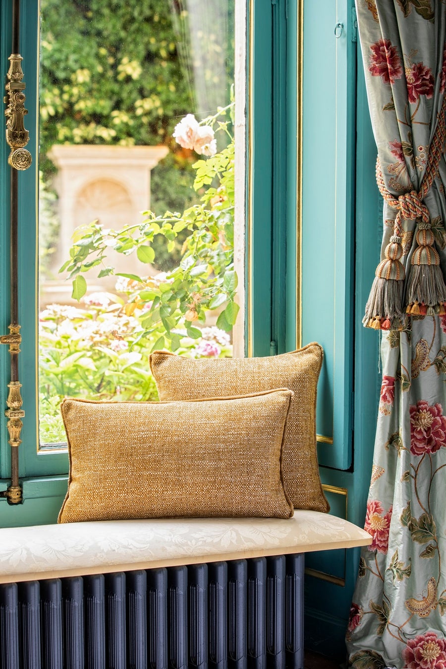 <イヴドローム>の美しいスタイルを組み合わせたゴブラン織りを展開し続けることで、ルイ14世の時代には王室御用達だった由緒ある織物が、身近に堪能できるアイテムとして未来へ継承する想いが込められています。