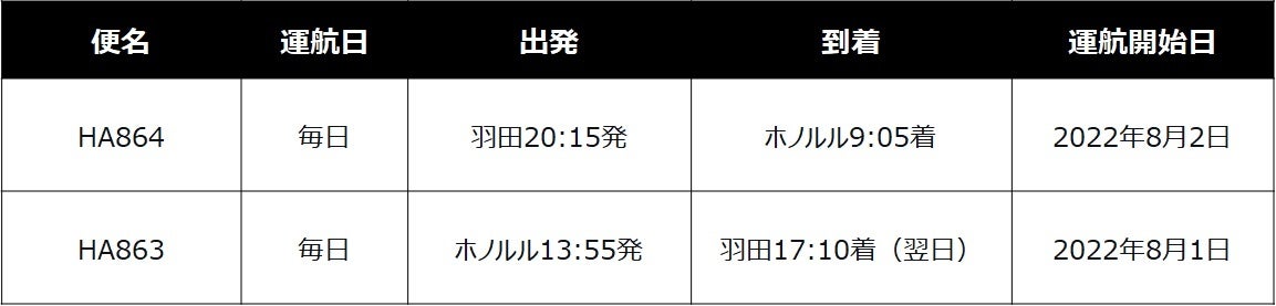【羽田-ホノルル間の運航スケジュール】