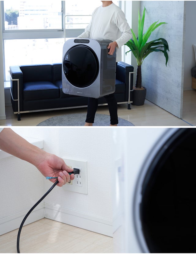 使いたい場所にエスティロPROミニ乾燥機を設置したらコンセントをさすだけ。