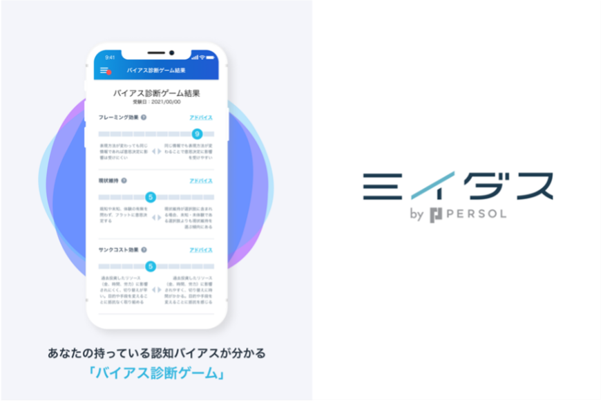 総合人材サービス、パーソルグループのミイダス株式会社(本社:東京都渋谷区、代表取締役社長:後藤 喜悦、以下ミイダス)が運営する中途採用サービス「ミイダス」は、意思決定の癖を計測する「バイアス診断ゲーム」機能を公開いたしました。同機能はすでにミイダスに会員登録しているユーザーに向け公開されており、「バイアス診断ゲーム」を受験すると、自分の持っている認知バイアスの特徴や、日常で気をつけるべきアドバイスを受け取ることができます。今回「バイアス診断ゲーム」公開にあわせ、『バイアス(認知バイアス)』に関する調査を実施いたしました。また、調査に伴い「バイアス診断ゲーム」に関連した Twitter でのプレゼントキャンペーン「#全国一斉バイアステスト」も開始いたします。