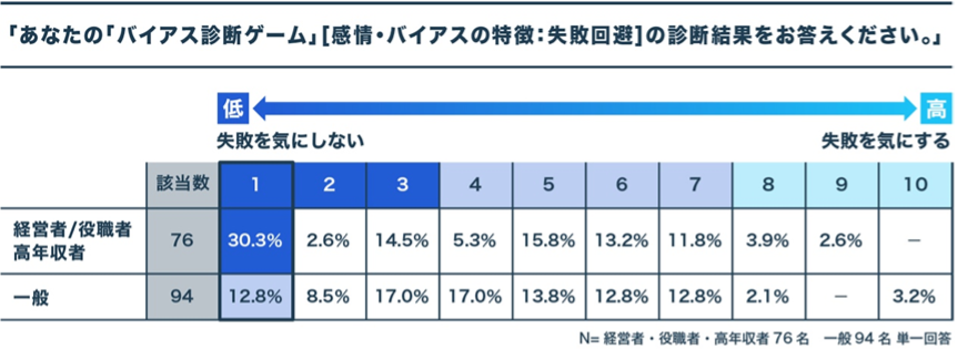 ●経営者・役職者は一般層より「失敗を気にしない」傾向が判明!一般層とは20%以上の差