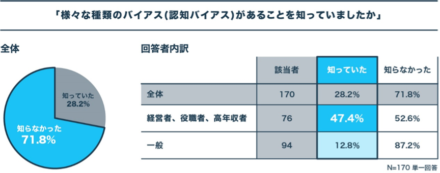 ●『バイアス』にも種類がある!約7割(71.8%)が「知らなかった」と回答。経営者、役職者、高年収者層では、