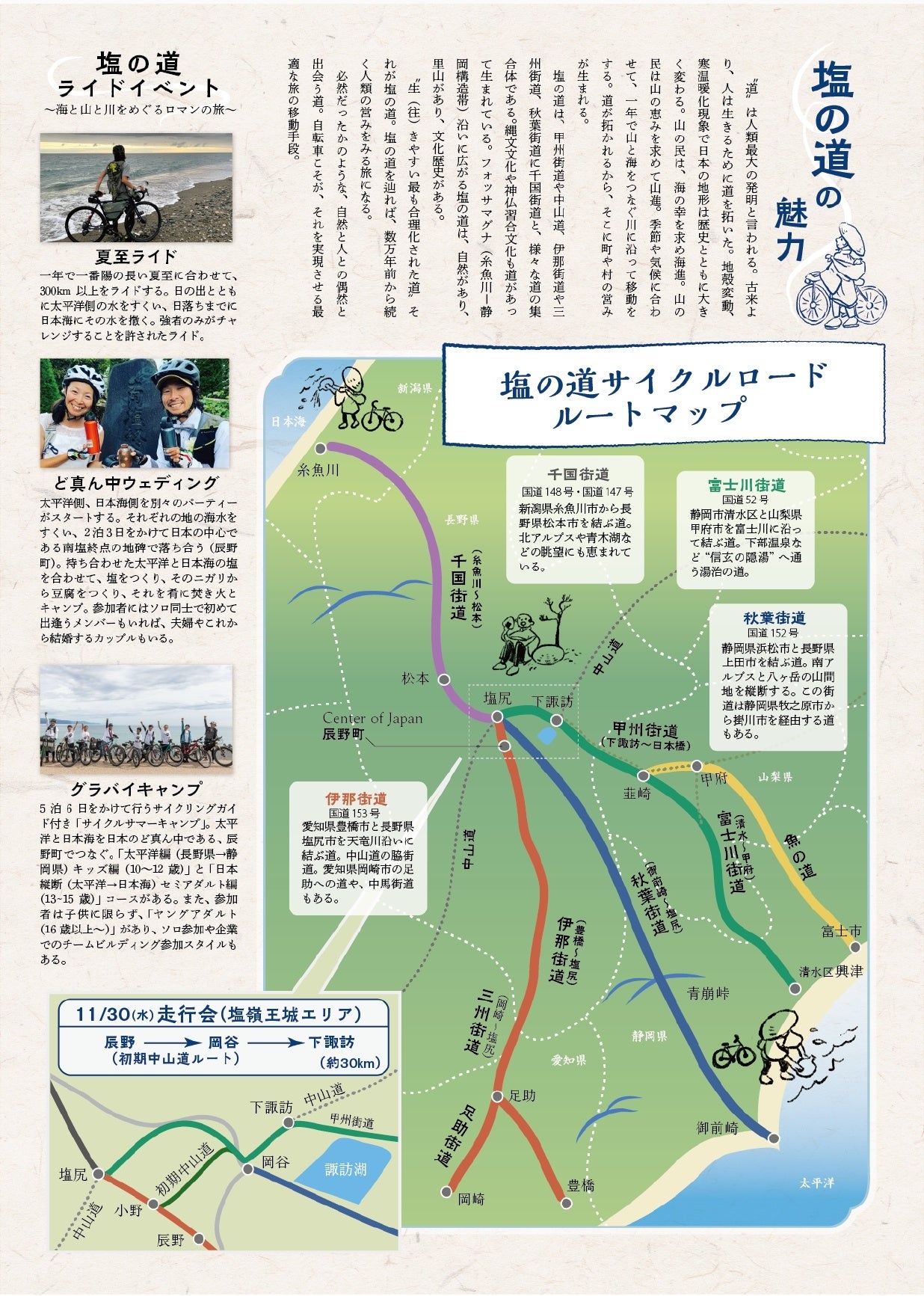 内容:29日:旧街道自転車旅「塩の道」車座会議、30日:塩の道自転車旅走行会