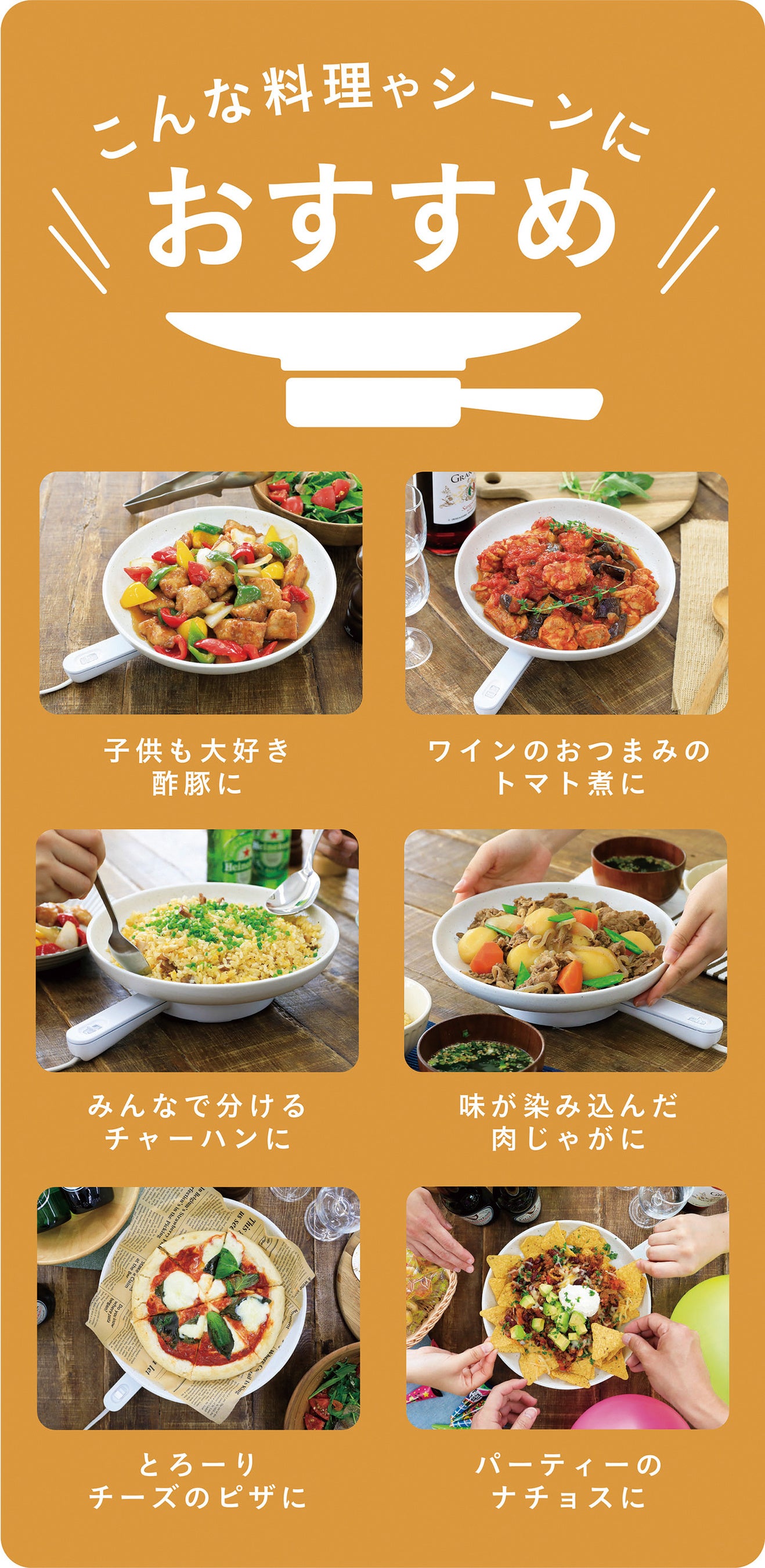 やっぱり、出来たてがおいしい。出来たてのような「おいしい温度」を持続できるので、時間がたっても温かい料理をおいしく食べられます。専用皿は電子レンジ対応。温め直してもおいしい温度を保ちます。