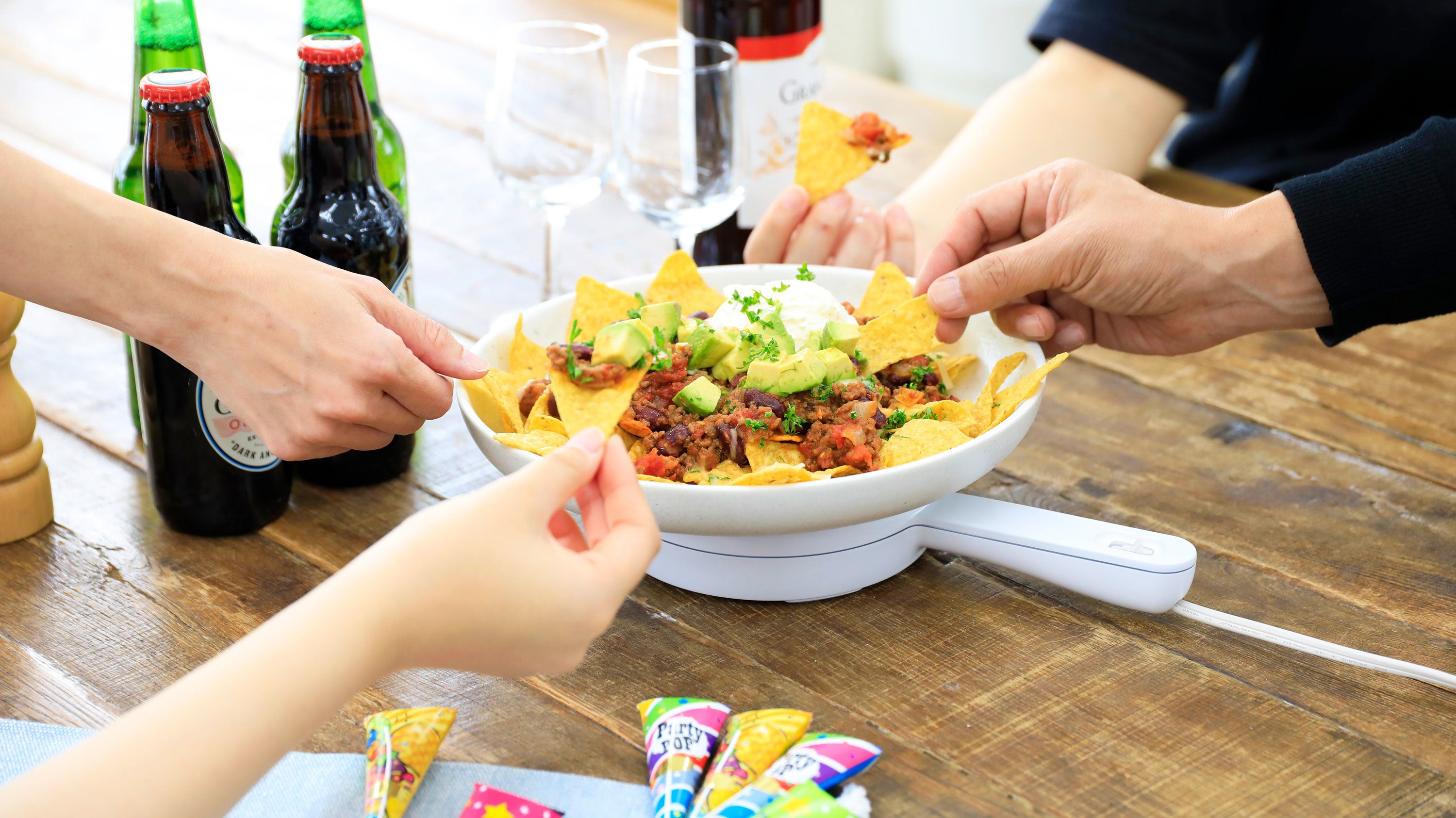 本商品は、温かい料理を付属のお皿に盛り付けヒーターユニットに載せることで、出来たてのような温かさを持続することができます。日常の食事シーンにはもちろん、会話を楽しみながらのホームパーティや、ゆっくり料理を楽しみたい晩酌時間にも最適です。出来たて料理を保温することで、食卓での料理を「提供する人」も「される人」も皆で一緒に楽しめます。
