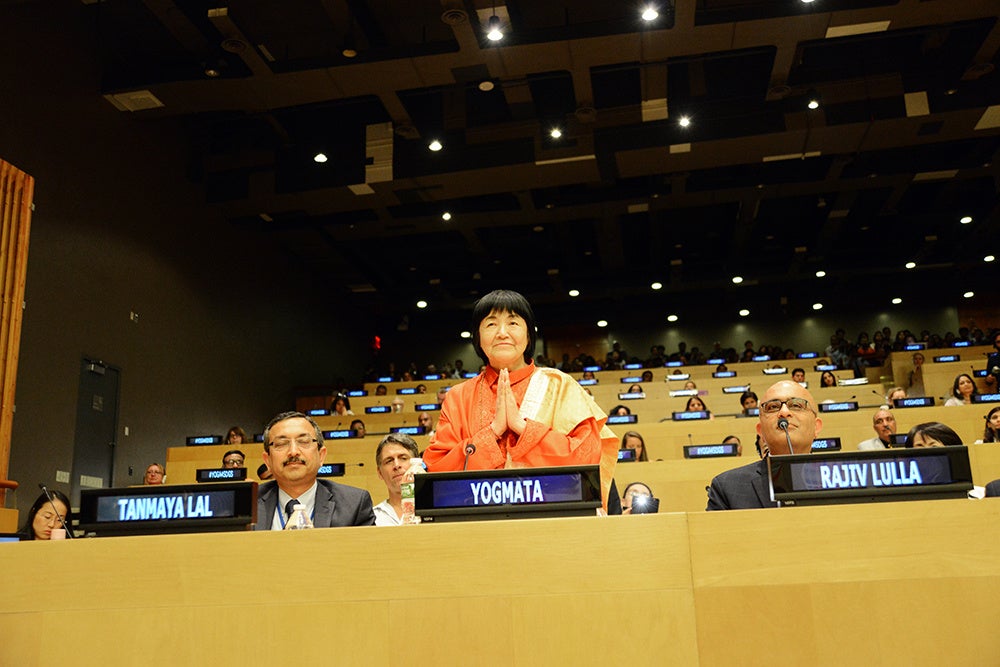瞑想の第一人者であるヨグマタ相川圭子は、これまで第2回、第3回「国際ヨガDAY」において、ニューヨーク国連本部におけるスピーチと瞑想指導を行った実績から、この度特別ゲストとして招聘されました。