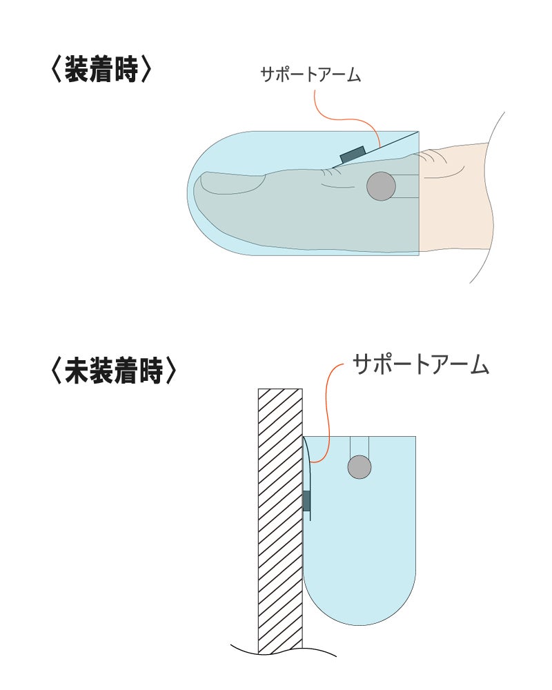 磁石内蔵のサポートアームを備えていて、ワンタッチで簡単着脱!
