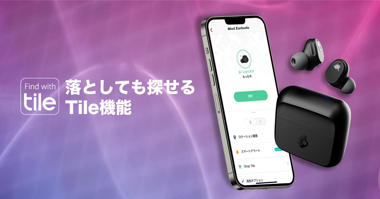 搭載された忘れ物防止アプリ「Tile」がイヤホンを紛失した際に接続が切れたおおよその場所を追跡。イヤホンからアラーム音を出し検索も可能です。