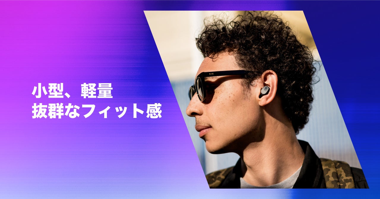 わずか4.6gと超軽量でコンパクトなデザイン。 装着安定性を追求し、落下防止デザインを採用。 抜群のフィット感により、ノイズが入らず音楽に没頭、 音漏れの心配もいりません。