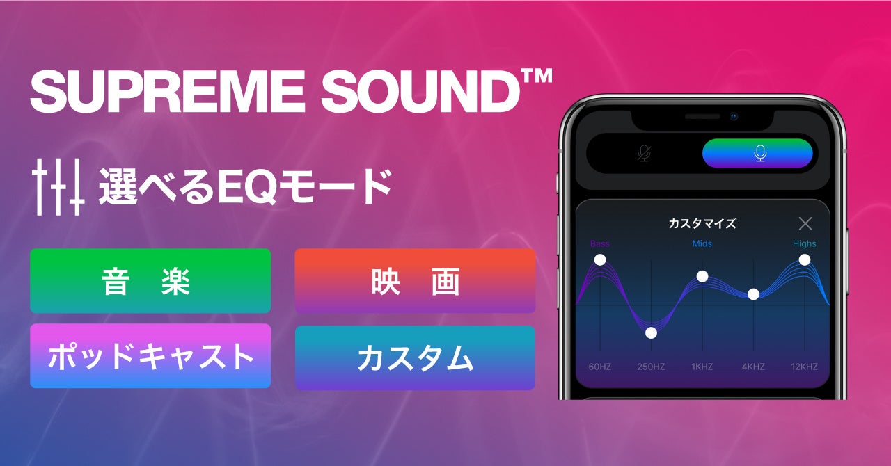 - 選べるEQモード(音楽 /ポッドキャスト / 映画 / カスタム)
