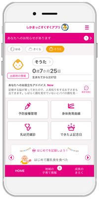 宮城県色麻町に採用された『しかまっこすくすくアプリ』は、スマートフォン・タブレット端末・PCに対応したサービスで、妊産婦と子どもの健康データの記録・管理や予防接種のスケジュール管理、出産・育児に関するアドバイスの提供、離れた地域に住む祖父母など家族との共有機能や、町が配信する地域の情報をお知らせするなど、育児や仕事に忙しい母親や父親を助けてくれる便利な機能が充実しています。