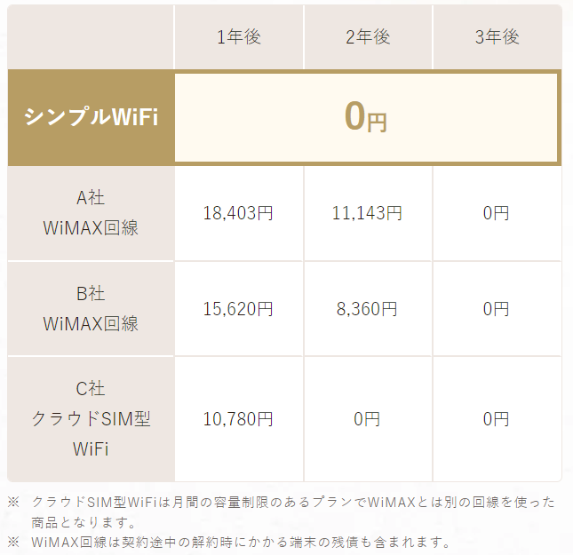 その点、シンプルWiFiは契約内容共にシンプルでわかりやすく、引っ越しや新生活を始める際にピッタリなWi-Fiです。