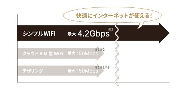 最大速度が4.2Gbps(※1)のシンプルWiFiなら、動画の視聴やオンラインゲームも快適にご利用可能です。