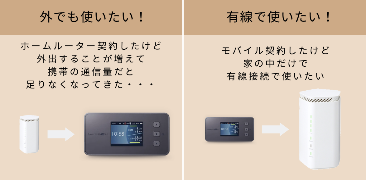 ・持ち運びに適したモバイルルータータイプを契約したが、家の中で有線接続で利用したい。
