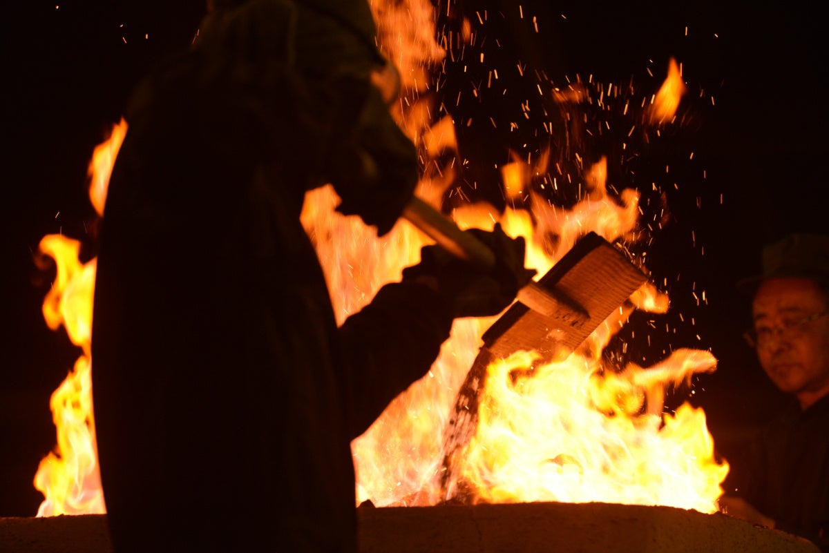 夜11時から参加頂き、砂鉄と木炭の投入とノロ出しを体験頂き、クライマックスの鉧出しにもご参加頂きます。