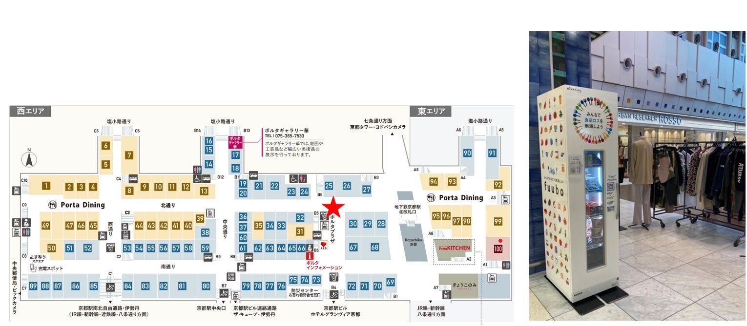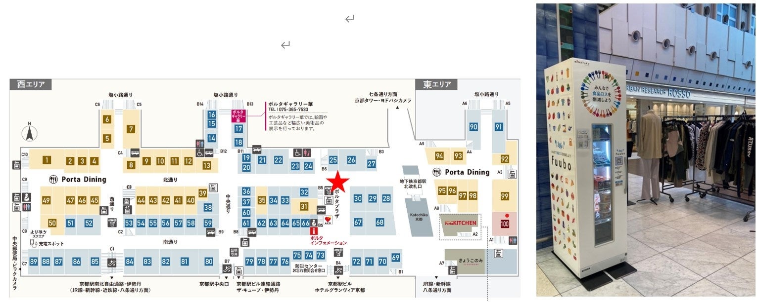 食品ロス削減のための無人販売機「fuubo(フーボ)」を京都駅前地下街ポルタに設置して、食品ロス削減と購買によるCO2の削減効果を見える化します。