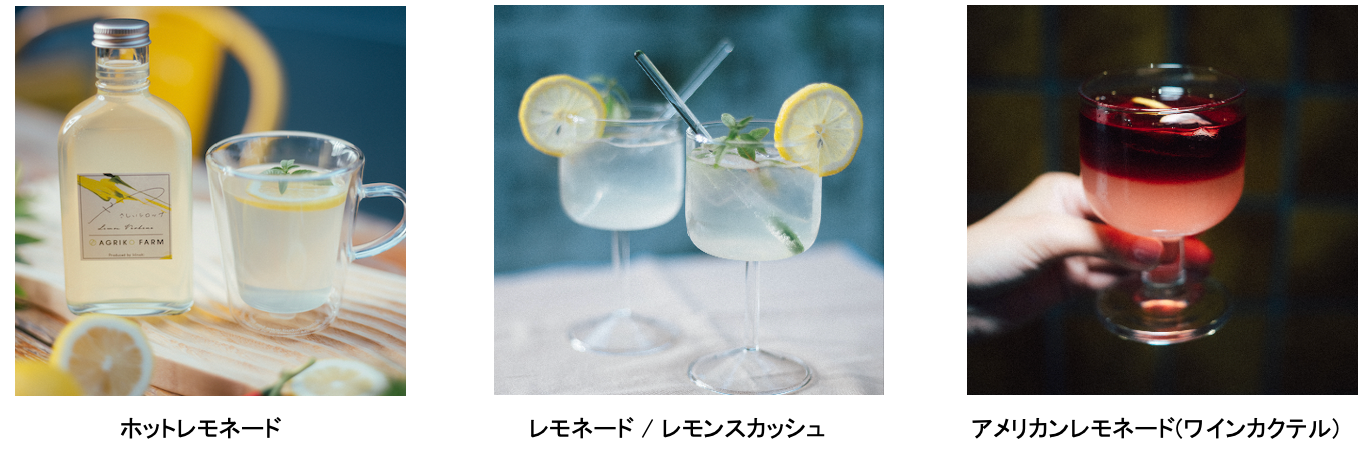 1.ホットレモネード 2.レモネード、レモンスカッシュ 3.アメリカンレモネード(ワインカクテル)