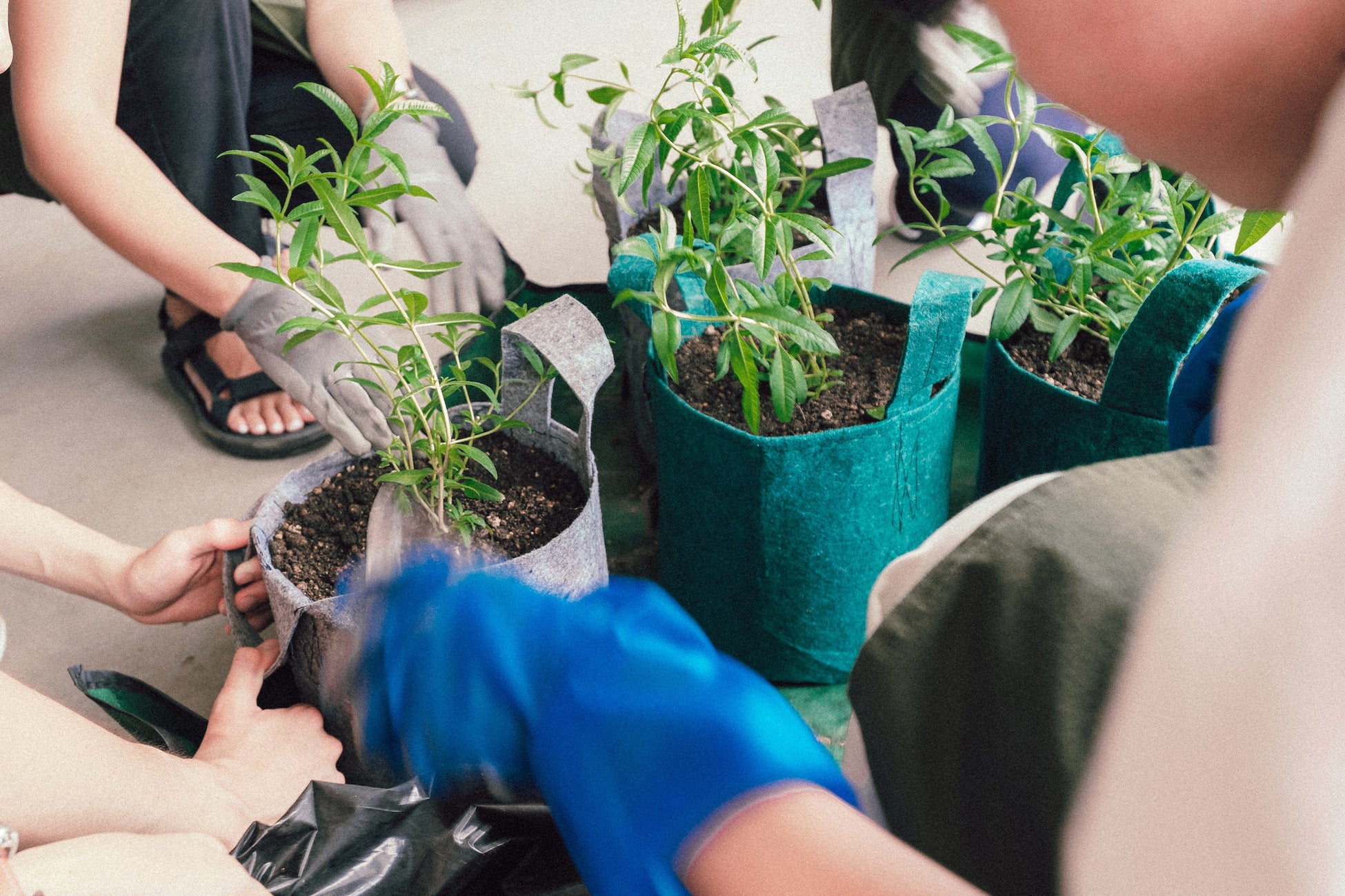 AGRIKO FARMでは、低木ハーブの栽培にはルーツポーチを使用しています。ルーツポーチはペットボトルを加工した再生繊維(P.E.T=ポリエチレンテレフタラート) とリサイクル天然素材を混合して作られた不織布製の植木鉢です。ルーツポーチは、生産から使用、そして処分まで全ての課程において、資源・エネルギー・資材の無駄をできるだけ無くし持続可能(サステナブル)な資源利用効率を追求しています。