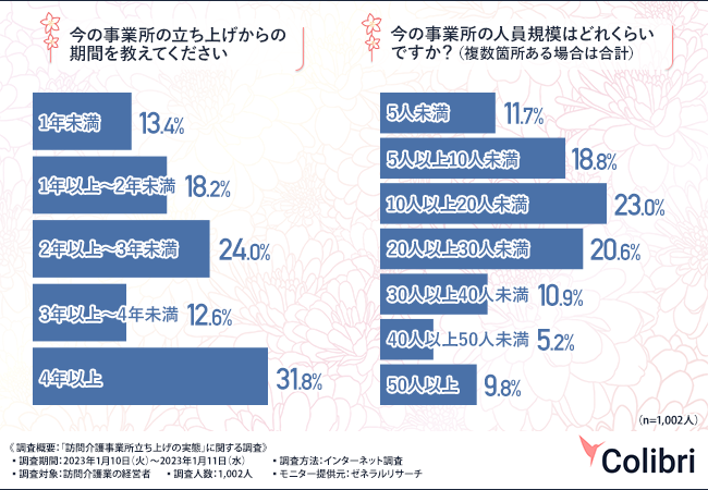 このような疑問点に答えるため、介護事業支援アプリColibri(https://colibri.jp/pages/product_videos)を手掛けるColibri合同会社は、訪問介護業の経営者を対象に、「訪問介護事業所立ち上げの実態」に関する調査を実施しました。