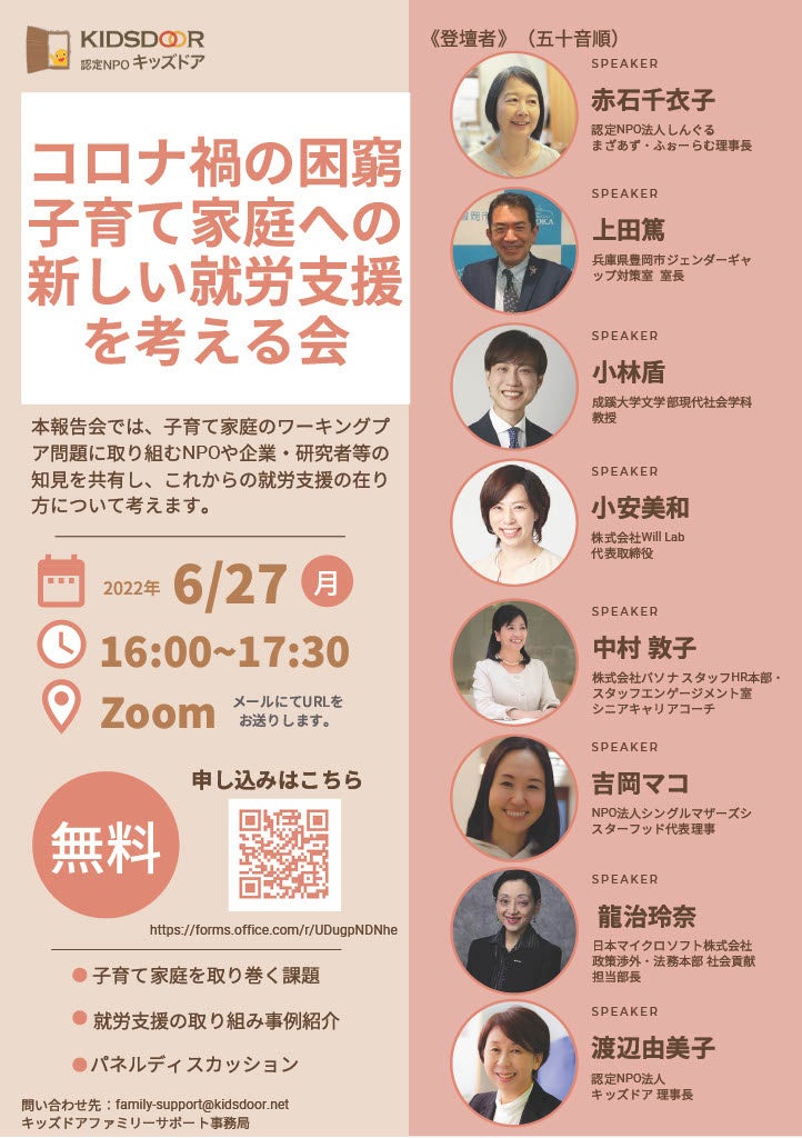 認定NPO法人キッズドア『コロナ禍の困窮⼦育て家庭への新しい就労⽀援を考える〜勉強会の成果報告会〜』の参加者募集
