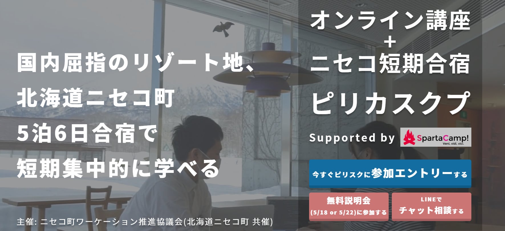 ニセコ町ワーケーション推進協議会(北海道虻田郡ニセコ町、以下「協議会」)は、2022年8月3日(水)から11月中旬までの約100日間で、プログラミングスキルの習得を目指す、オンライン講座+北海道ニセコ町での短期合宿付きプログラミング講座「ピリカスクプ」を開催します。